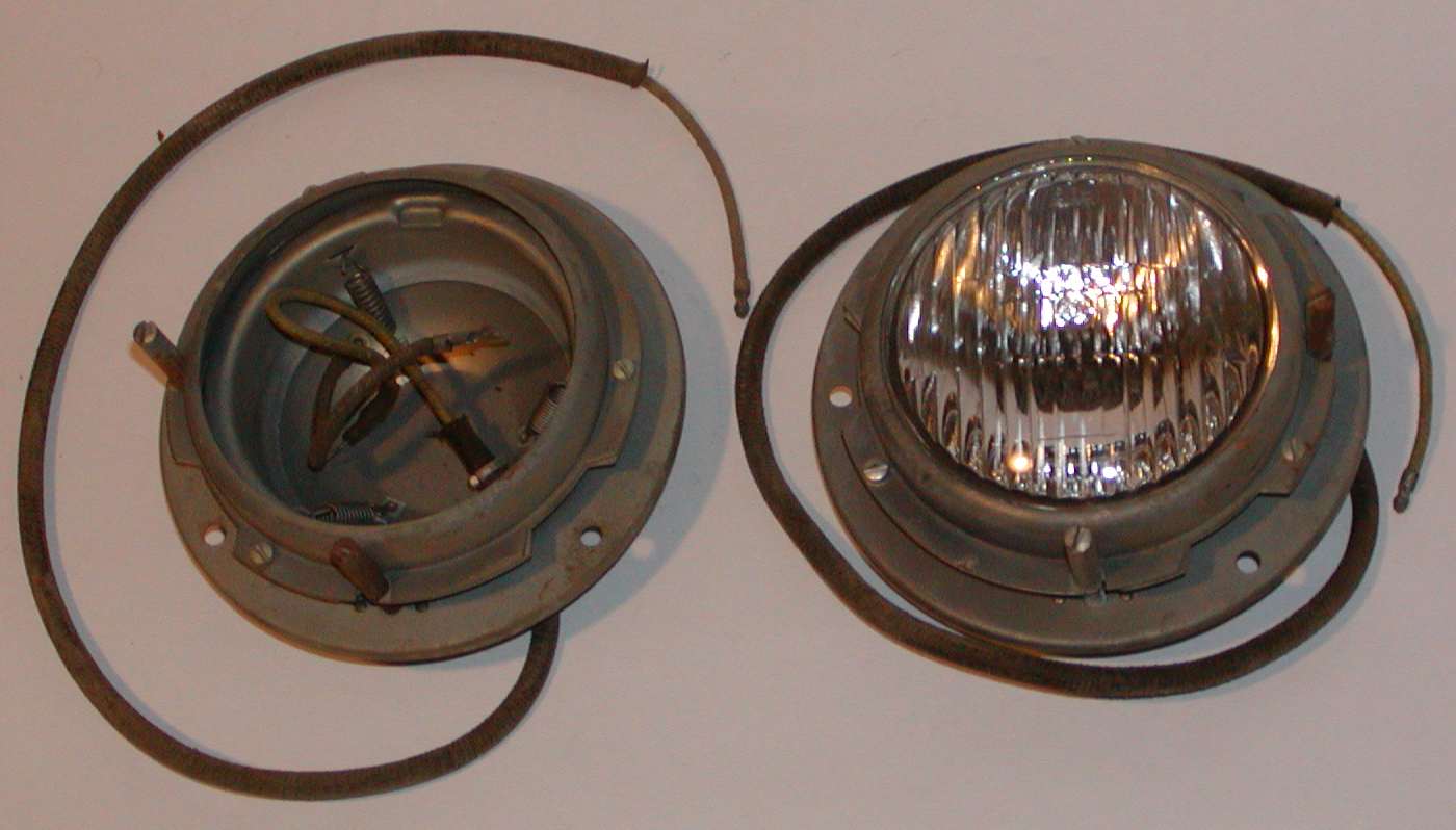 Shown below is an NOS kit used in these cars. The switch is a sought after item as not many have survived. The switch allowed the headlamps to be operated in conjunction with the roadlamps, as required in some states. The lamps could either be clear or amber.