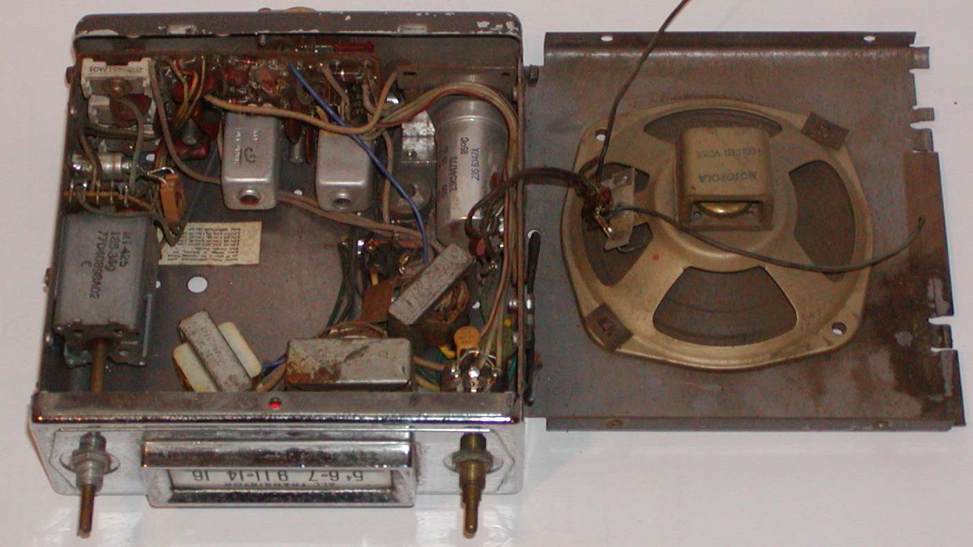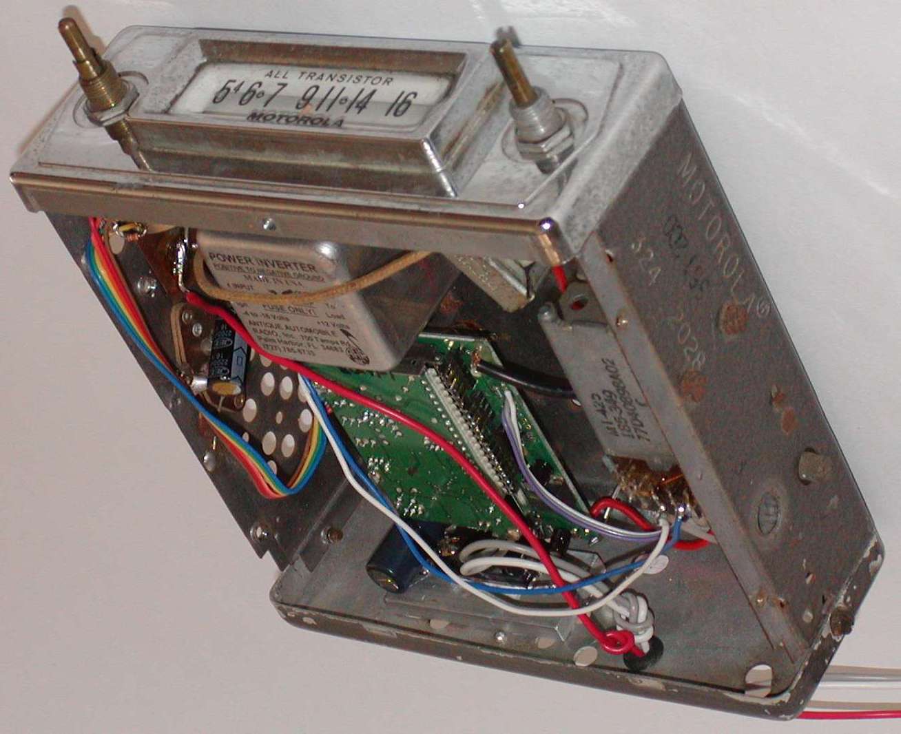 The radio had very little room for the installation of the conversion components, despite being transistorized.  The car was restored maintaining the original 12 volt positive ground electrical system, making conversion more difficult.
