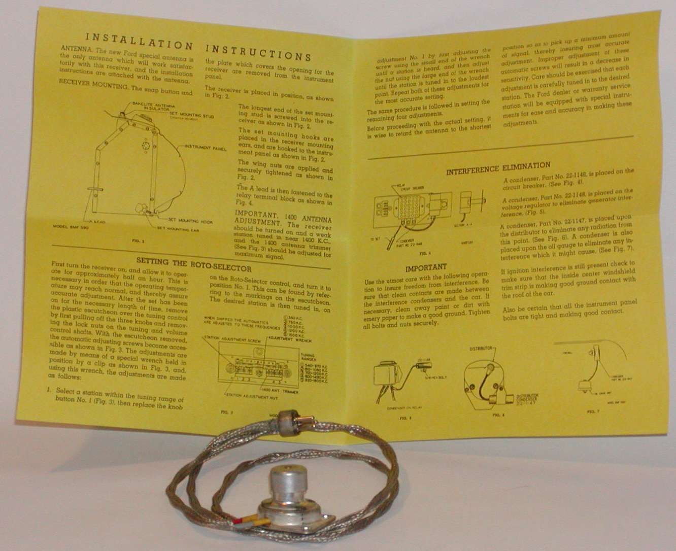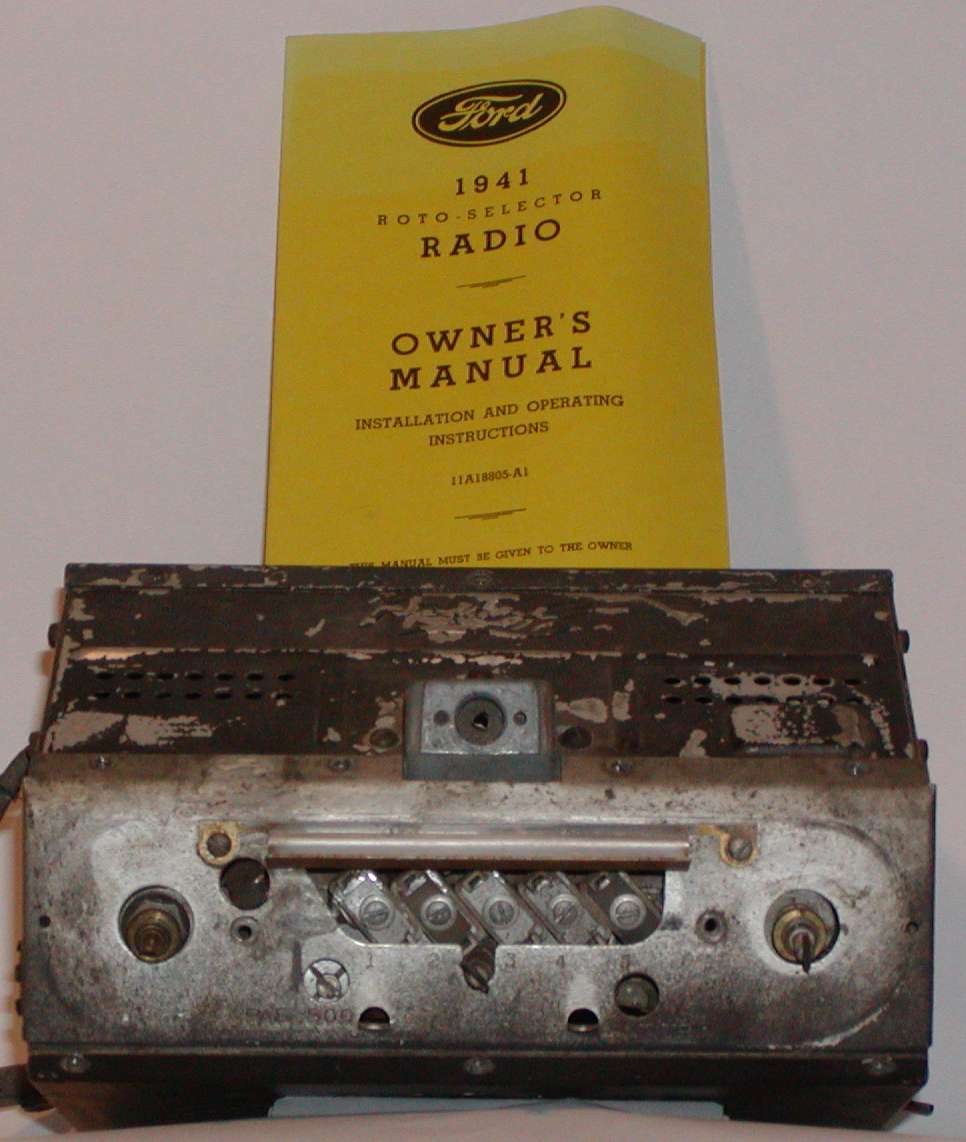 Pre WW II (1941) Ford radio made by Zenith with the optional remote station selector. Note the presets are screwdriver adjusted. The dial face has been removed, as the owner had to do, to change his favorite stations. Fortunately there were not as many stations to choose from then, as there are today! Tuning the whole band manually was as it is today with the right hand shaft.