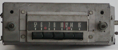 Ford radio without bezel and knobs. The dial is bright and clear.