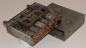 This view shows the complexity of the radio and its packaging. Special construction was utilized to dissipate the heating. This presented a challenge to find room for the conversion.